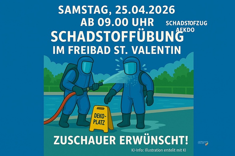 Dichter Chlorgasnebel, eine verletzte Person und höchste Gefahr: Bei einer Schadstoffübung im Freibad St.Valentin wurde ein realistischer Chlorgasunfall simuliert.