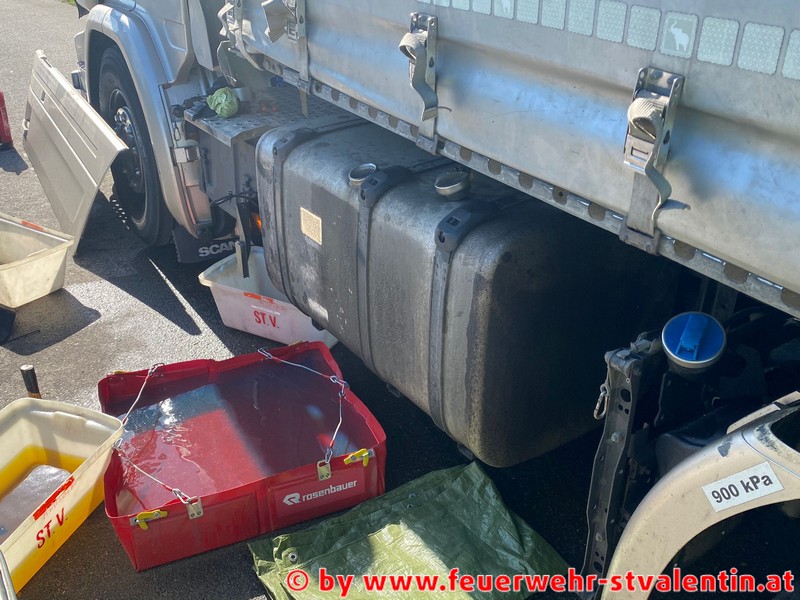 St. Valentin, Bezirk AMSTETTEN. LKW Tank leckgeschlagen mit Austritt von ca 300 Liter Diesel.