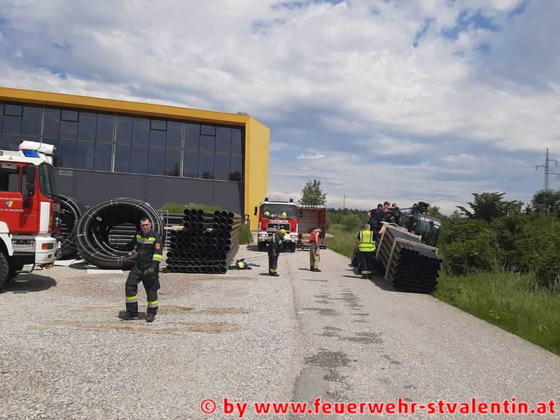 St. Valentin, Bezirk AMSTETTEN. Stapler durch Feuerwehr aus misslicher Lage befreit.