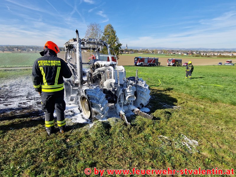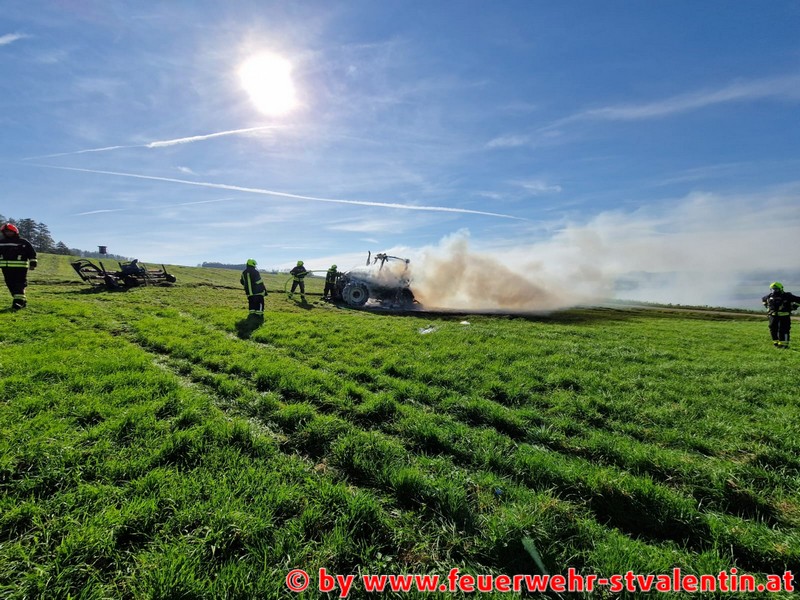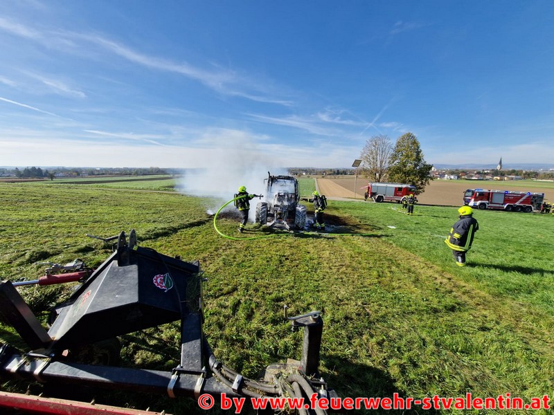 Die Freiwilligen Feuerwehren Endholz und Stadt St. Valentin wurden am Donnerstag den 20. Oktober, am frühen Nachmittag zu einem B2 Fahrzeugbrand auf den Rohrberg alarmiert. Ein Traktor geriet während Arbeiten auf einer Wiese in Brand und brannte binnen Minuten komplett aus.