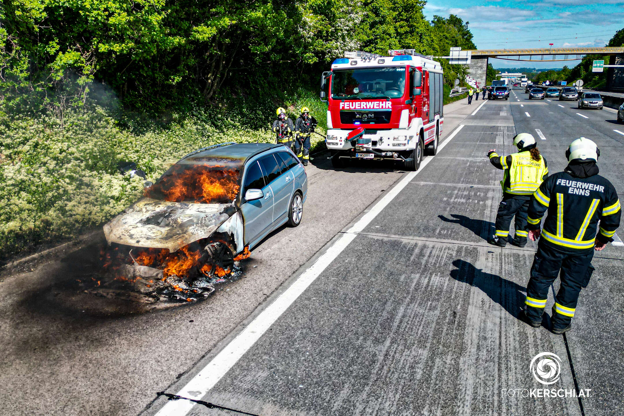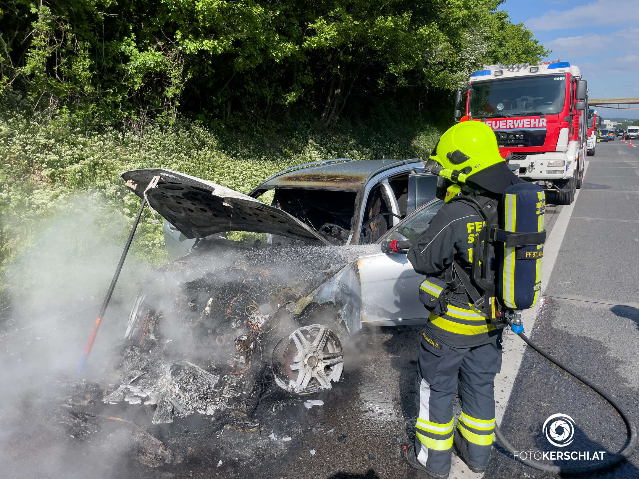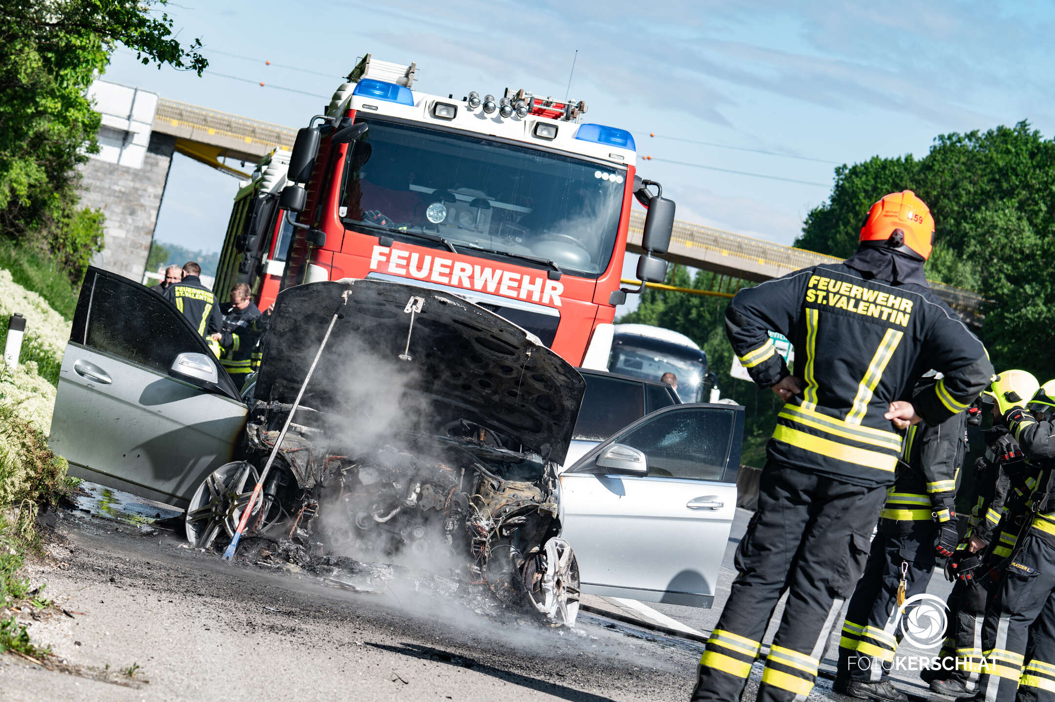 Der Vorfall ereignete sich in Höhe der Anschlussstelle Enns, als während der Fahrt plötzlich ein Feuer im Motorraum des PKW ausbrach. Sofort nachdem der Fahrer den Brand bemerkte, handelte er besonnen und brachte das Fahrzeug sicher zum Stehen. Der Fahrzeuglenker konnte sich rechtzeitig in Sicherheit bringen, bevor die Flammen auf das gesamte Fahrzeug übergriffen. Umgehend wurden die Feuerwehren Enns und St. Valentin alarmiert, die mit schwerem Atemschutz zur Einsatzstelle eilten. In enger Zusammenarbeit mit der Polizei und den Traffic Managern der Asfiang wurde die Unfallstelle abgesichert, um die Sicherheit der Verkehrsteilnehmer zu gewährleisten. Die Einsatzkräfte führten die Löscharbeiten durch und konnten den Brand erfolgreich unter Kontrolle bringen. Während der Löscharbeiten kam es im Bereich der Anschlussstelle Enns in Fahrtrichtung Linz zu kleineren Verkehrsbehinderungen. Die zuständigen Behörden und Einsatzkräfte arbeiteten jedoch mit Hochdruck daran, den Verkehr schnellstmöglich wieder fließen zu lassen und die Unfallstelle zu säubern.