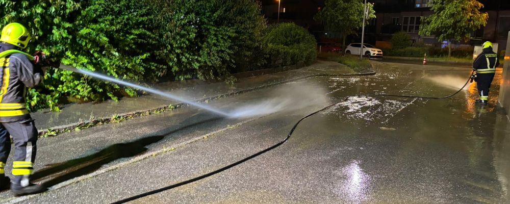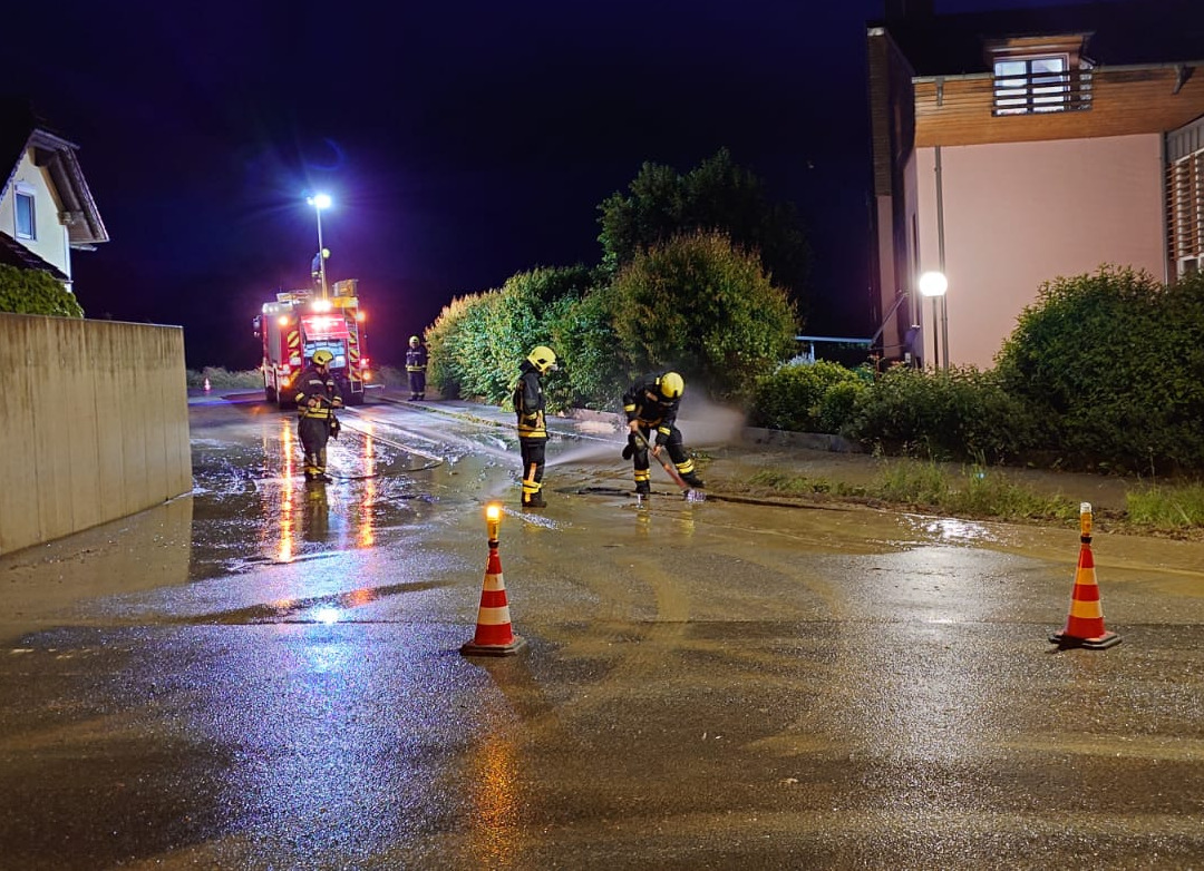 Durch die Freiwillige Feuerwehr wurden die Kanalschächte wieder freigemacht und die Straßen von groben Schmutz gereinigt.