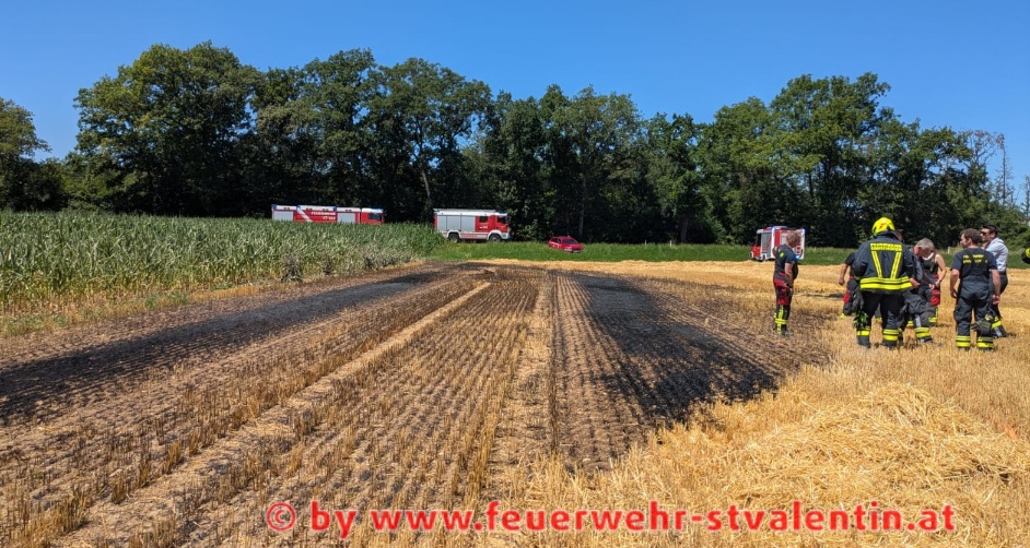 Zu diesem Einsatz wurde die FF St.Valentin gemeinsam mit der Betriebsfeuerwehr CNH und der FF Ensthofen alarmiert. Der Flurbrand auf einem Getreidefeld konnte schnell gelöscht werden.