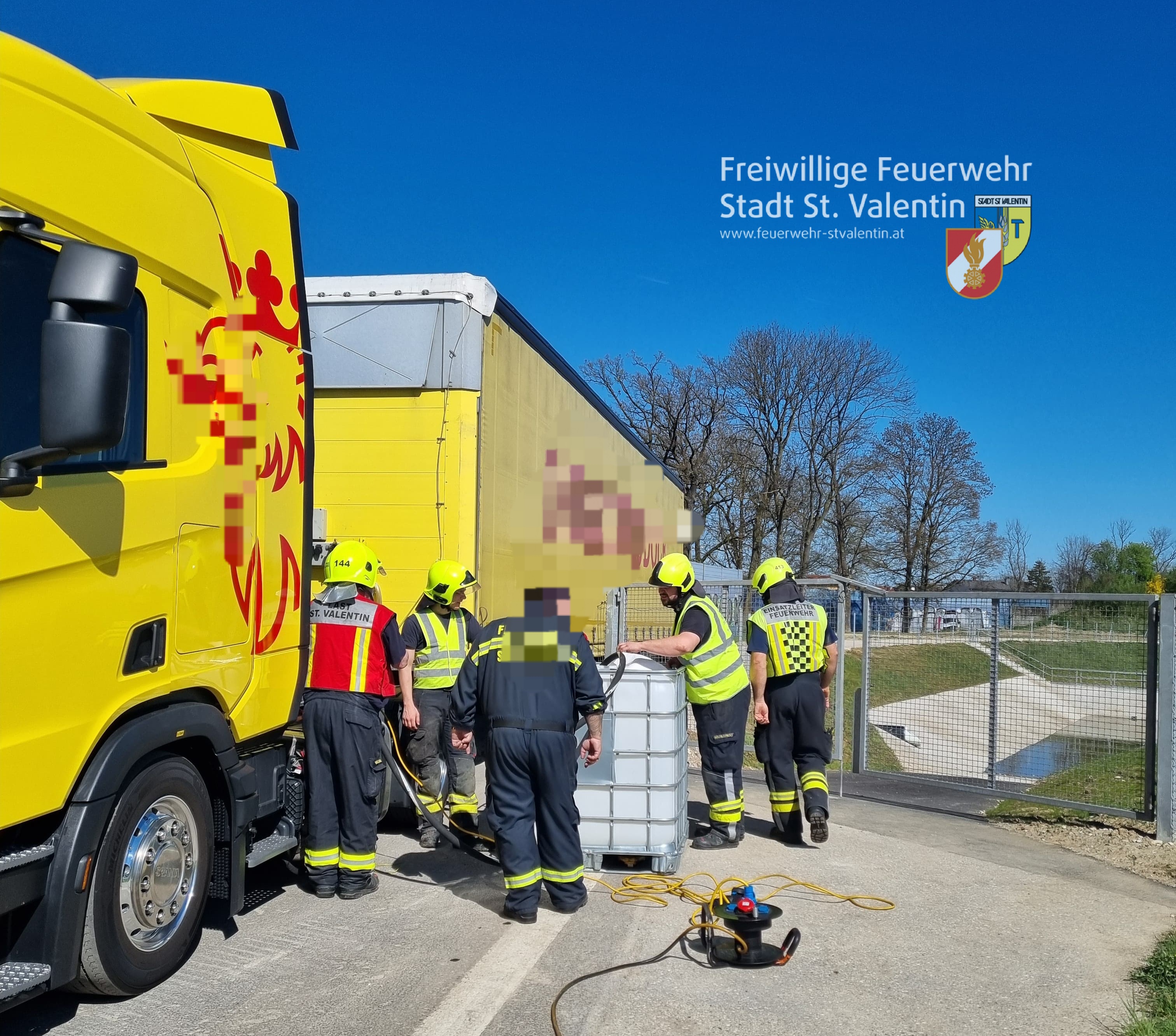 Nach Rücksprache mit der zuständigen Bezirkshauptmannschaft (BH) wurde der beschädigte Tank provisorisch abgedichtet und der verbliebene Diesel abgesaugt.