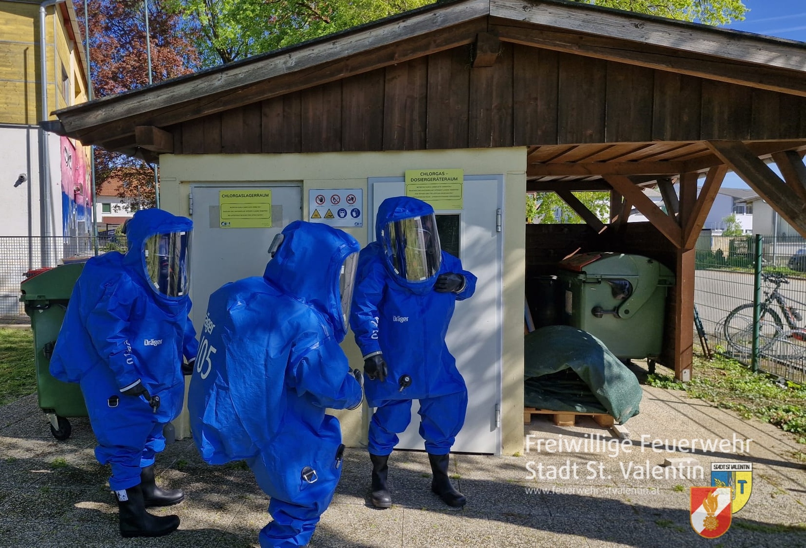 Dichter Chlorgasnebel, eine verletzte Person und höchste Gefahr: Bei einer Schadstoffübung im Freibad St.Valentin wurde ein realistischer Chlorgasunfall simuliert.
