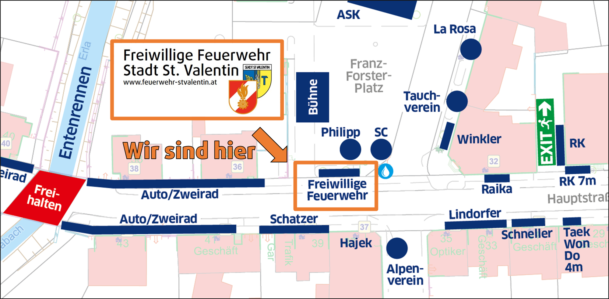 Ihr findet unsere Bar in der Bushaltestelle Franz-Forster-Platz gegenüber der Buchhandlung Hajek.