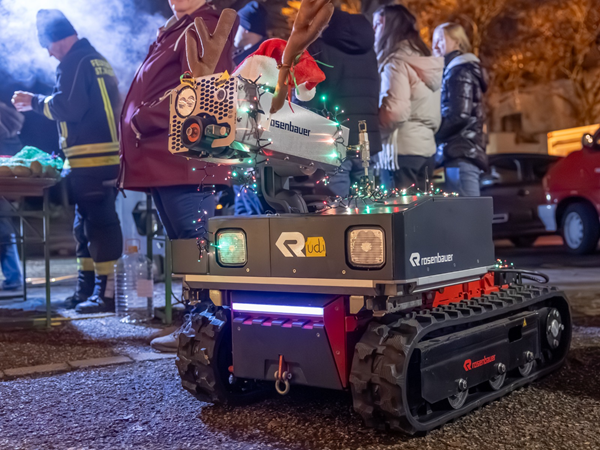 Unser Löschroboter hat sich währen des Adventmarktes als Rentier verkleidet und wünscht eine lustige, schöne und besinnliche Weihnachtszeit.